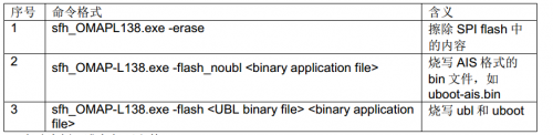 表 2 sfh_OMAPL138.exe常用命令表
