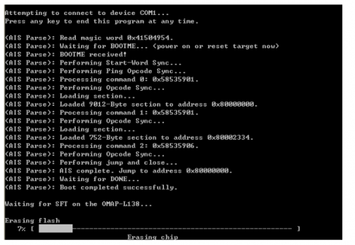 sfh_OMAPL138.exe –targetType OMAP-L138 –flashType SPI_MEM –erase