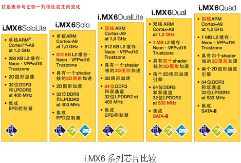 經(jīng)過i.MX31處理器(基于ARM11處理器內(nèi)核)、i.MX35、i.MX37、i.MX50(基于ARM Cortex-A8內(nèi)核)、i.MX51、i.MX53等系列多媒體處理器的持續(xù)演進,飛思卡爾的多媒體處理器在市場上備受美譽。之后,飛思卡爾再接再厲,又重磅推出i.MX6系列。